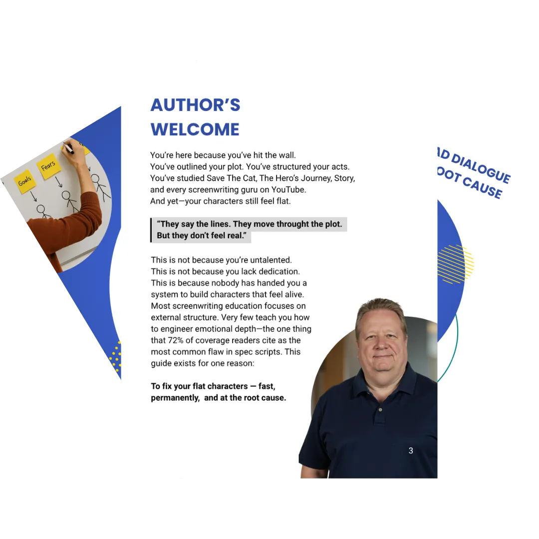 Yes — it’s made for beginner to intermediate screenwriters. If you’ve ever felt like your characters are just “filling space,” this is for you. The steps are clear, no fluff, and designed so you can apply them immediately — no advanced theory required.