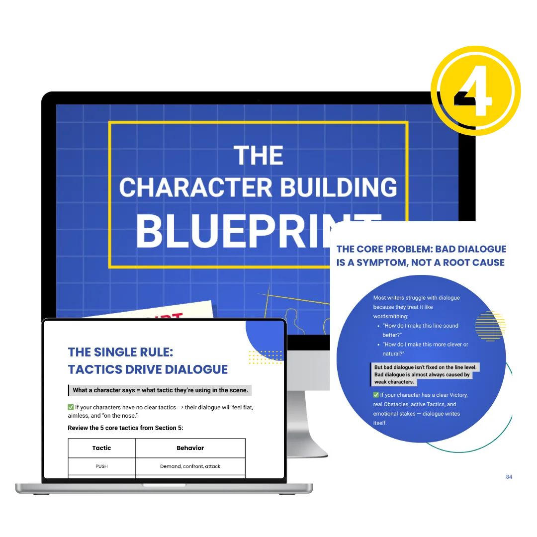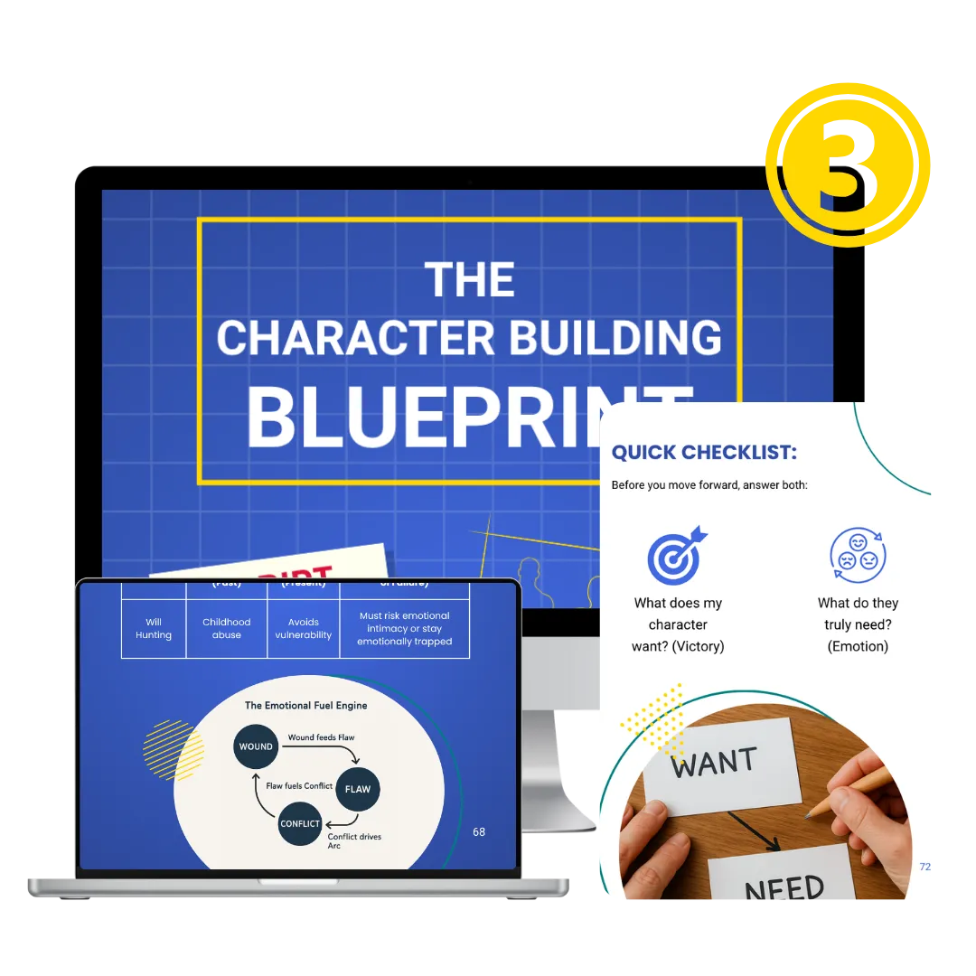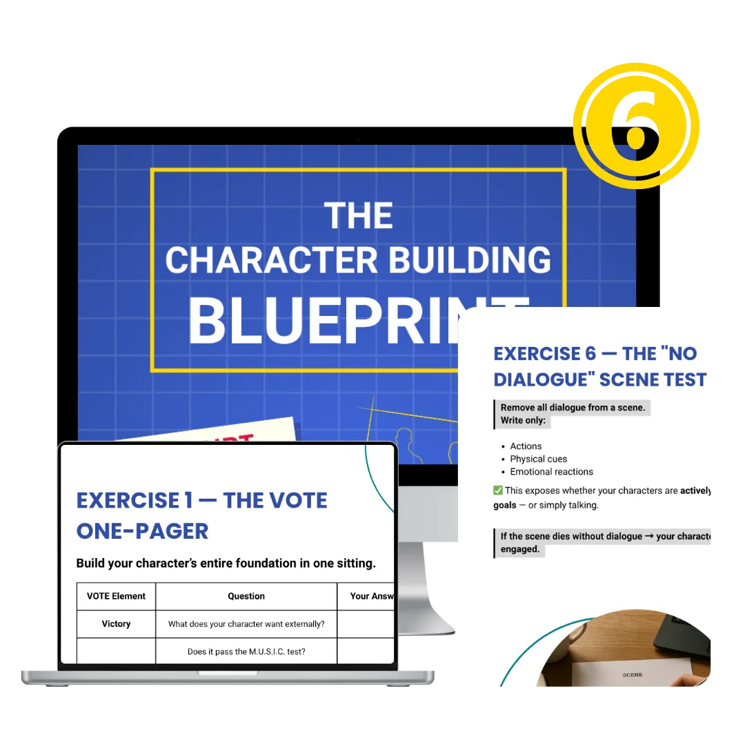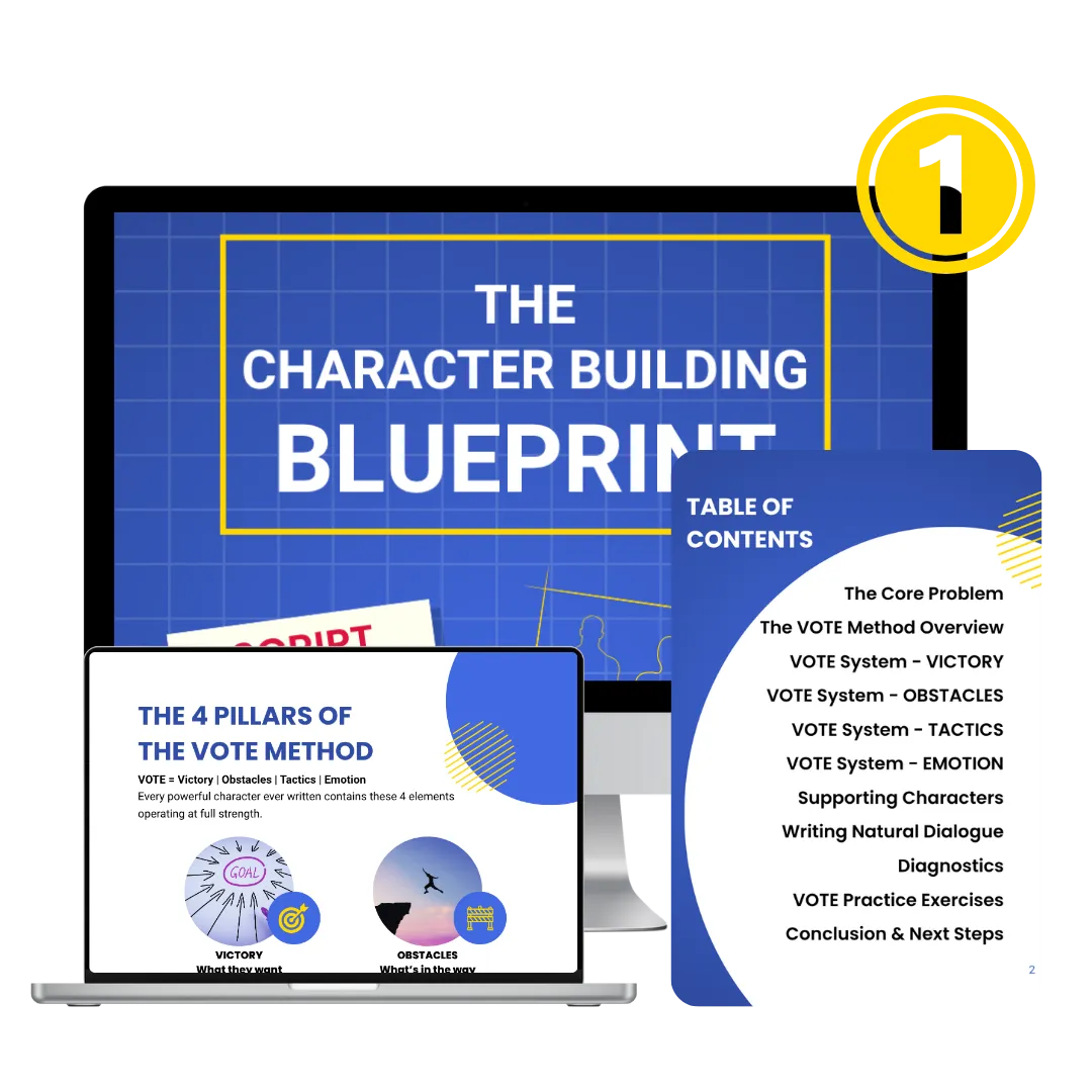 That’s why we created The Character Building Blueprint — a research-backed PDF that walks you through the exact 4-step process (VOTE: Victory, Obstacles, Tactics, Emotion) to finally build characters that feel like real people — with real conflict, growth, and emotional pull.